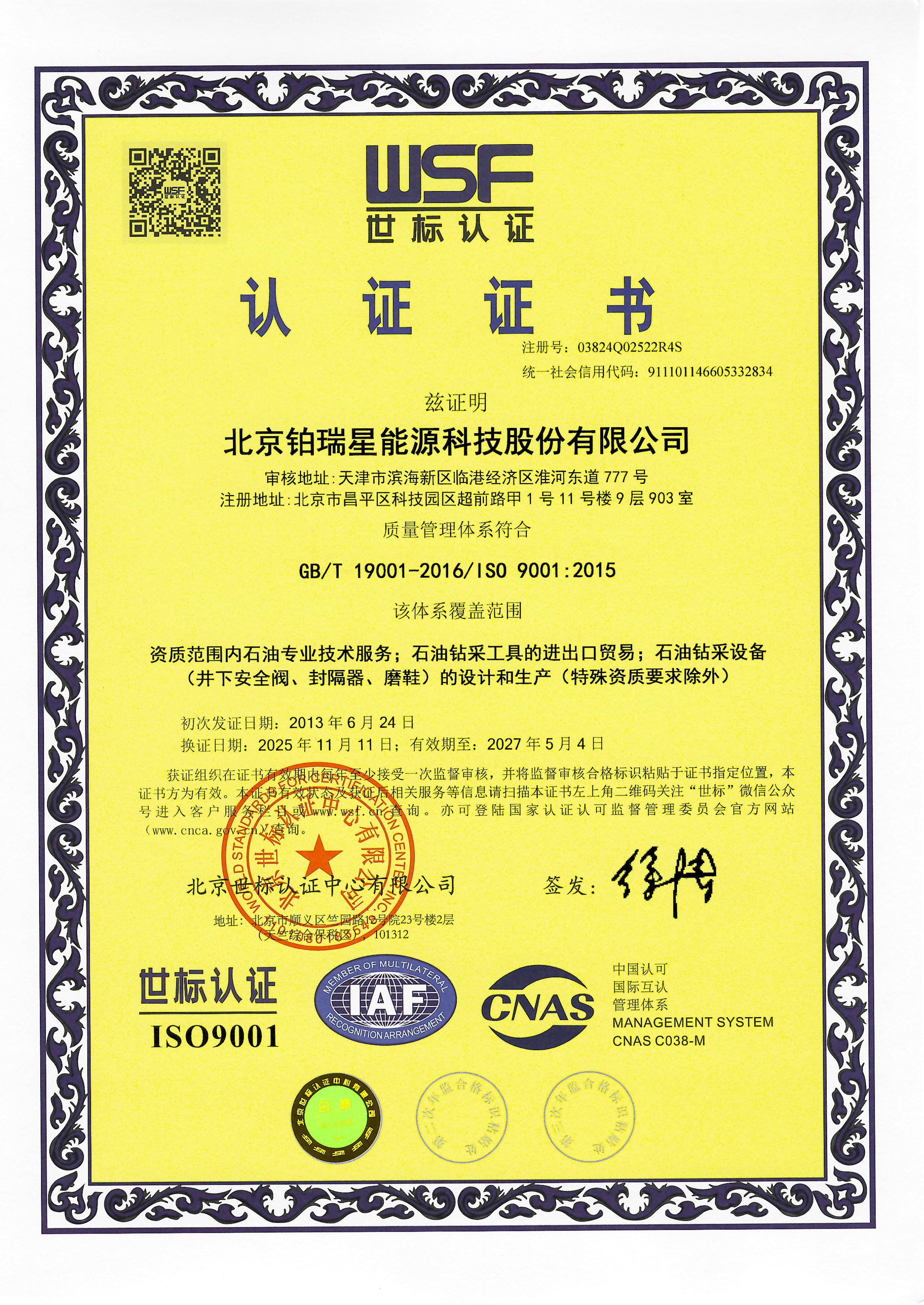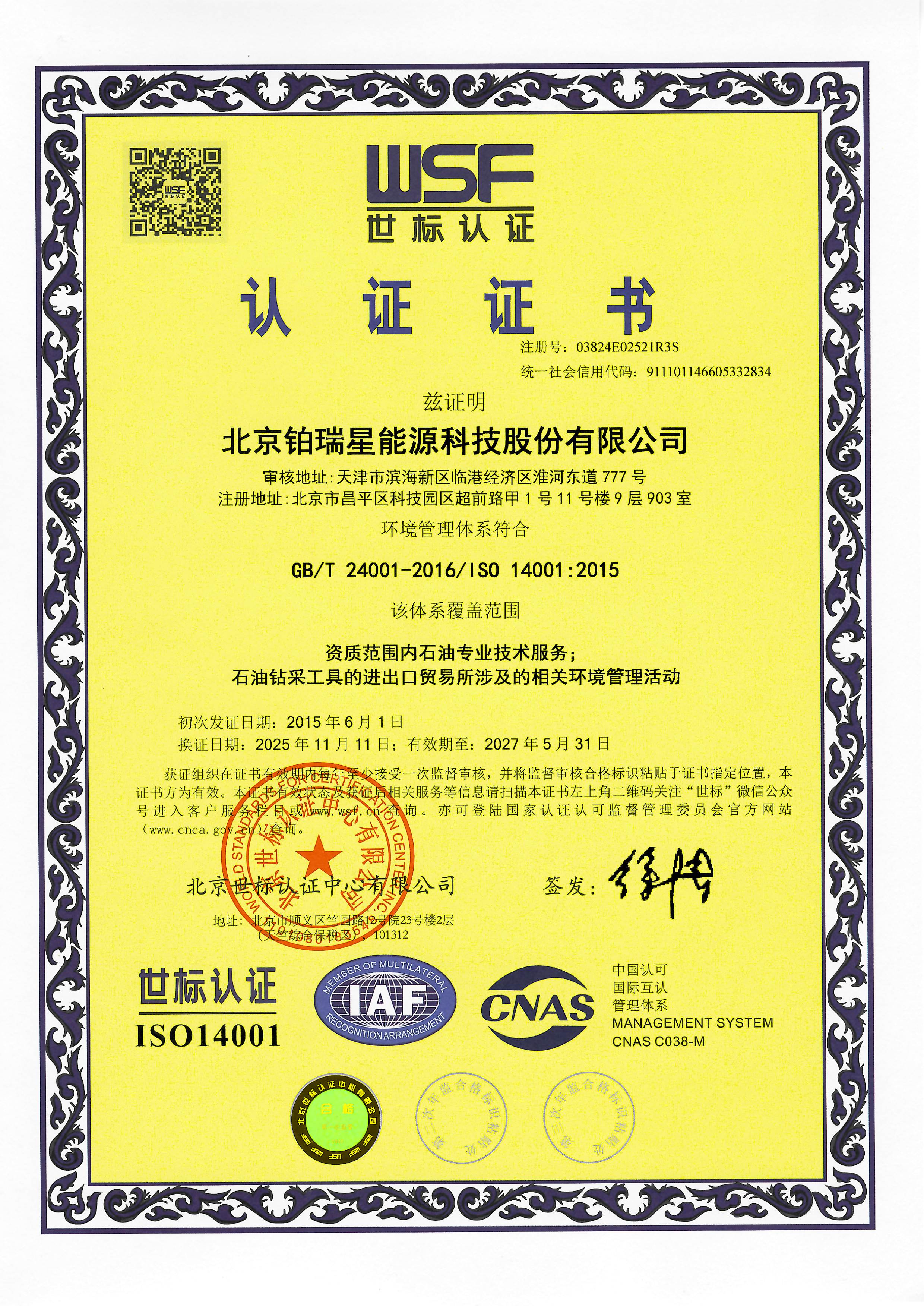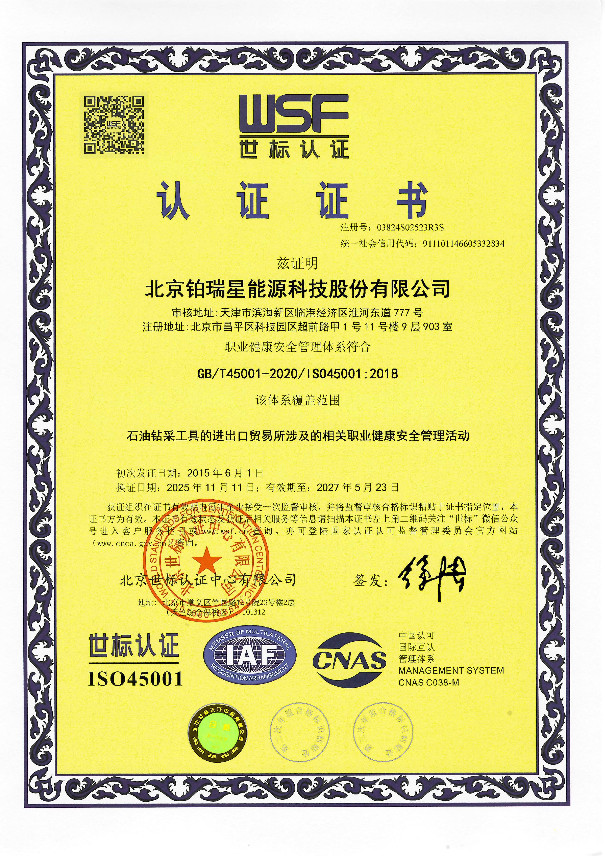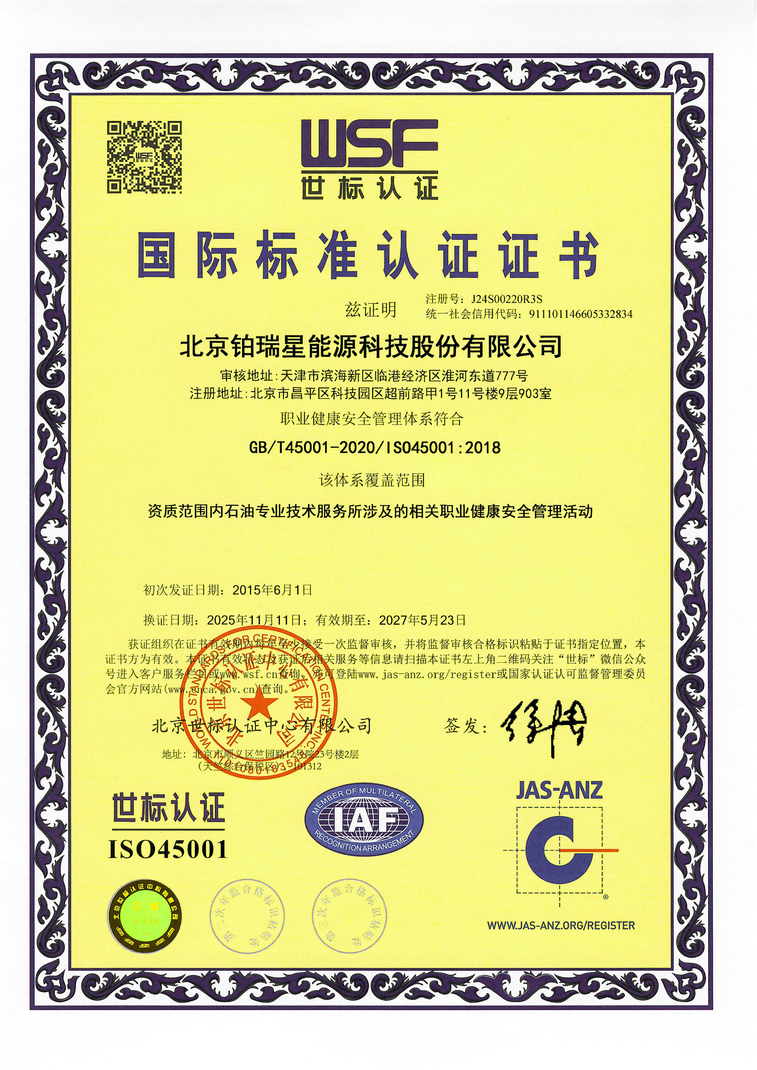 职业健康安全体系证书